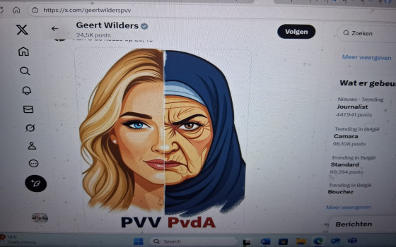 امستردام : اوروبا والعرب رسالة نشرها زعيم اليمين المتشدد الهولندي خيرت فيلدرز على موقع X في 4 أغسطس، تُظهر صورة امرأتين نصف وجهين - شابة شقراء على...