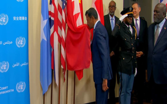 نيويورك : اوروبا والعرب في المقر الدائم للأمم المتحدة وخارج قاعة مجلس الأمن الدولي رُفعت أعلام الدول الخمس التي بدأت عضويتها في المجلس في الأول...