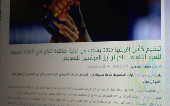 بروكسل : اوروبا والعرب اهتم الاعلام الرياضي مساء الجمعه بالخبر الذي تناقلته وكالة فرانس برس بشأن الاعلان عن سحب تنظيم كأس امم افريقيا 2025 من غينيا وحسب...
