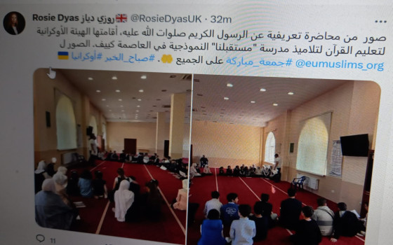 بروكسل : اوروبا والعرب نشرت روزي دياز المتحدثة باسم الخكومة البريطانية في منطقة الشرق الاوسط وشمال افريقيا مجموعة من الصور لتلاميذ يشاركون في محاضرة تعريفية بالرسول...