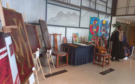 وفي مدخل الفندق كان هناك معرضا لفنان من جنوب افريقيا يدعى فيفا وقال انه سعيد بالمشاركة في هذا الاحتفال  الذي يؤكد على ان الهوية الافريقية واضاف في تصريحات لـ " اوروبا والعرب " " عندما نجتمع ونتحد سيرى العالم ان افريقيا جميلة وانا بمفردي لا استطيع ان اغير العالم ولكن عندما نتحد نستطيع ان نفعل الكثير وقال ايضا ان الللوحات والاعمال الفنية التي يشارك بها تحمل رسالة تؤكد على وحدة افريقيا سيكون السبب في تحقيق كل الامال فمثلا الة الدرامز تتكون من عدة الات يتم النقر عليها ولكن في النهاية تصنع فنا جميلا ويجب ان تكون افريقيا متحدة حتى يظهر الجميل فيها "