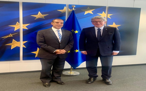 سفير مصر في بروكسل يلتقي بالمفوض الأوروبي للسوق الداخلي والفضاء والرقمنة