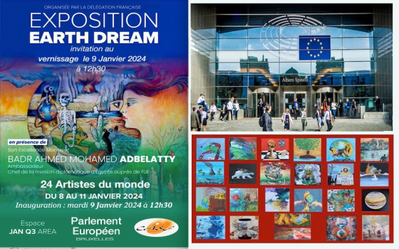 لوحات الفنان المصري ابوسرية في مقر البرلمان الاوروبي من خلال معرض " حلم الارض "