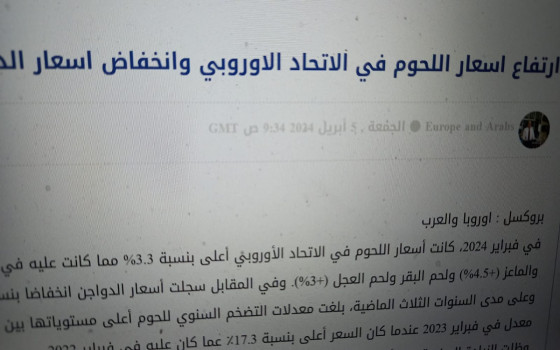 في اطار حرص الموقع الاخباري " اوروبا والعرب " على المصداقية و الانفراد والتميز واحترام عقلية المتابعين ، سجل الموقع سبقا جديدا بعدما قام بنشر خبر يوم الجمعه الماضي عن ارتفاع اسعار اللحوم في الاتحاد الاوروبي ولكن صباح اليوم الاثنين قامت مواقع اخبارية اخرى معروفة ولها كل التقدير بنشر الخبر اي بعد ثلاثة ايام